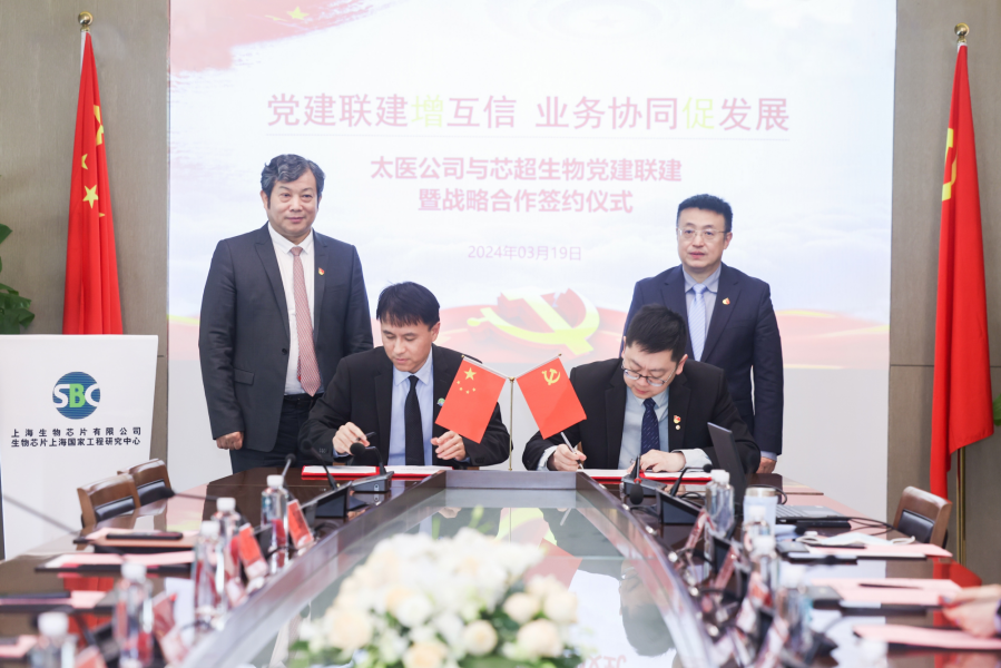 3月19日下午,生物芯片上海國(guó)家工程研究中心旗下上海芯超生物科技有限公司(以下簡(jiǎn)稱:芯超)與太平洋醫(yī)療健康管理有限公司在中心舉行黨建聯(lián)建暨戰(zhàn)略合作簽約儀式。中心黨總支委員、主任,芯超生物黨支部書記郜恒駿教授與太平洋壽險(xiǎn)黨委委員、副總經(jīng)理,太醫(yī)公司總經(jīng)理魏琳參加活動(dòng)并發(fā)表重要講話。芯超生物及太平洋醫(yī)療健康共計(jì)60余名黨員同志參與此次活動(dòng)。