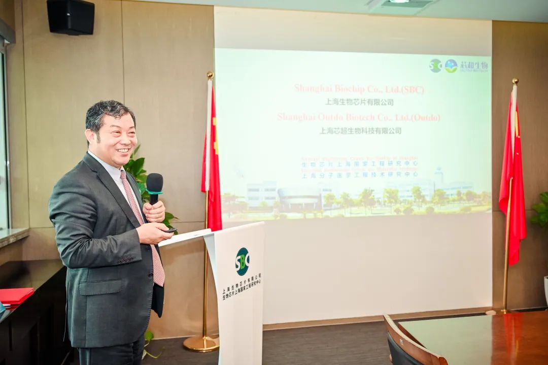 生物芯片總經(jīng)理李躍、中心主任、芯超生物總經(jīng)理郜恒駿、MD全球總裁Mary B Duseau、首席財(cái)務(wù)官Jaison Battle、MD中國(guó)區(qū)總經(jīng)理張梅郁、達(dá)邁生物總經(jīng)理于公爾等出席簽約儀式。簽約儀式由生物芯片副總經(jīng)理余翔主持。