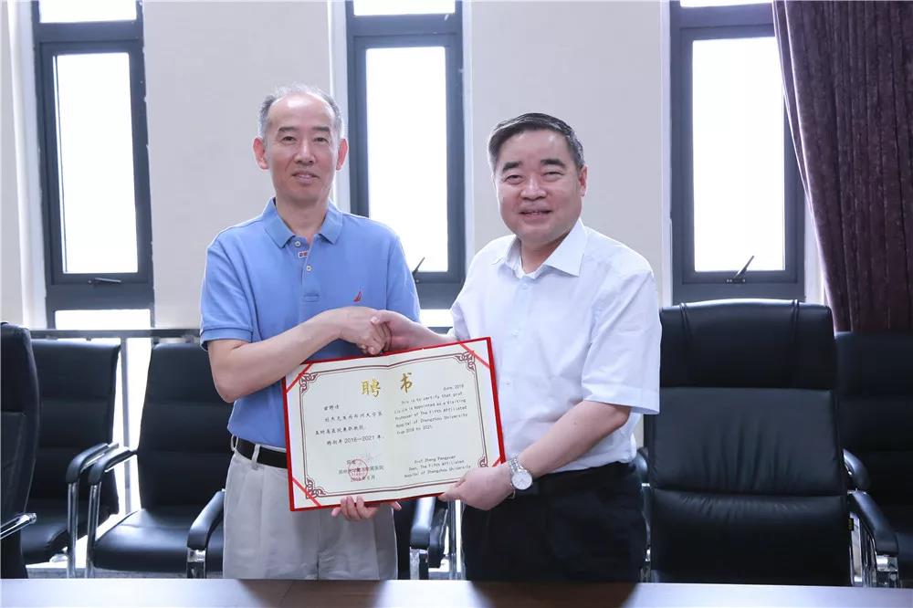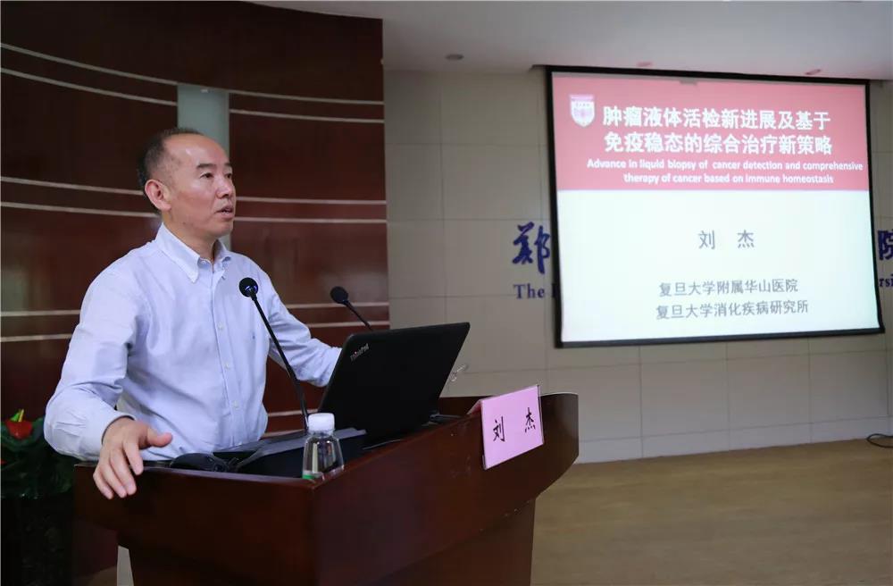 ▲ 復(fù)旦大學(xué)附屬華山醫(yī)院劉杰教授講授《腫瘤液體活檢新進(jìn)展及基于免疫穩(wěn)態(tài)的綜合治療新策略》,并受聘為鄭州大學(xué)五附院兼職教授