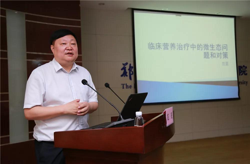 ▲ 新疆自治區(qū)人民醫(yī)院范旻教授講授《腸內(nèi)營(yíng)養(yǎng)與消化系統(tǒng)疾病》講座,并受聘為鄭州大學(xué)五附院兼職教授